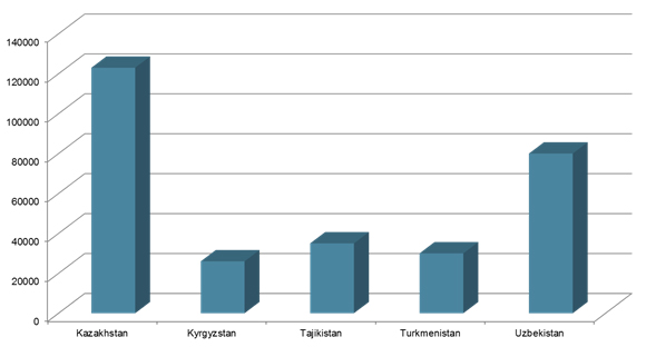 Abb. 1: Drogensituation in Zentralasien – geschätzte Zahl von Heroinkonsumenten