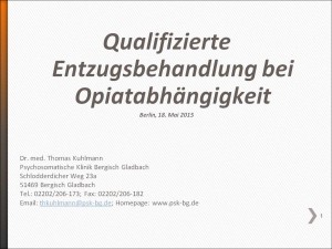 Als Fazit fasste Kuhlmann zusammen, dass eine sozialpsychiatrische Haltung entscheidend für eine gute (Entzugs-)Behandlung Opiatabhängiger ist. Dafür stellt die Spaltung des Hilfesystems in niederschwellig, überlebenssichernd und ausstiegsorientiert ein großes Problem dar. Diese Spaltung muss überwunden werden, um Überleben und Teilhabe zu sichern. Substitution darf kein Ausschlusskriterium für medizinische Reha sein, und auch Ausbildungs-, Arbeits- und Wohnangebote (z. B. Clean-WGs) müssen weiterentwickelt werden.