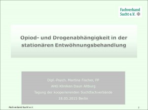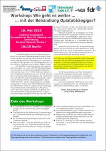 Deshalb haben sich die fünf Suchtverbände zum Ziel gesetzt, die Brückenbildung zwischen Substitution und Entwöhnungsbehandlung zu fördern und Opiatabhängigen den Zugang zur Entwöhnungsbehandlung zu erleichtern. Dazu veranstalteten sie am 18. Mai 2015 in Berlin den Workshop „Wie geht es weiter … mit der Behandlung Opiatabhängiger?“, in dessen Rahmen die Ausgangslage analysiert und darüber diskutiert wurde, wie eine integrierte und systemübergreifende Behandlungsplanung erreicht werden kann. Eingeladen waren Experten/-innen und Fachleute aus Forschung und Praxis und Vertreter/-innen der Leistungsträger, die einladenden Verbände waren der Bundesverband für stationäre Suchtkrankenhilfe e. V. (buss), die Caritas Suchthilfe e. V. (CaSu), der Gesamtverband für Suchthilfe e. V. (GVS), der Fachverband Drogen- und Suchthilfe e. V. (fdr) und der Fachverband Sucht e. V. (FVS).