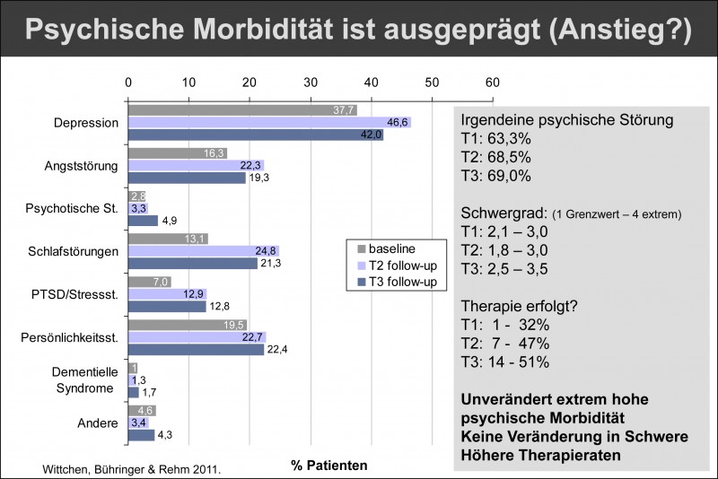 Die psychische Morbidität ist unter Substitution weiterhin stark ausgeprägt. Zu den häufigsten komorbiden Störungen gehören Depression, Angststörungen, Schlafstörungen, Persönlichkeitsstörungen sowie Stress- und psychotische Störungen. Über Substitutionsbehandlung in Haft sind so gut wie keine Daten bekannt.