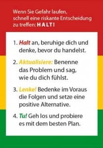 - den Entscheidungsprozess mit dem unmittelbar zugänglichen Modell HALT! (s. Abb. 3) reorganisieren.
