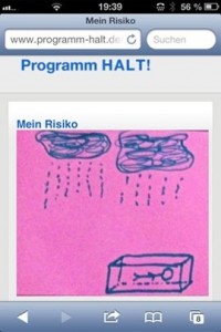 Ein besonderer Ansatz des HALT!-Programms liegt darin, Erfahrungen der Teilnehmer so aufzuarbeiten, dass persönliche „Erinnerer“ erschlossen werden, die an eigene Lebenserfahrungen anknüpfen und damit in besonderer Weise der Steuerungs- und Entscheidungsfähigkeit dienen. Sie sorgen dafür, dass die wichtigen „Entscheider“ identifiziert und emotional besetzt im Entscheidungsprozess rasch zugänglich sind. Damit die persönlichen Erinnerer im Alltag jederzeit zur Verfügung stehen, können sie in eine Internetapplikation (www.Programm-halt.de, s. Abb. 4) eingefügt und für Smartphones bereitgestellt werden.