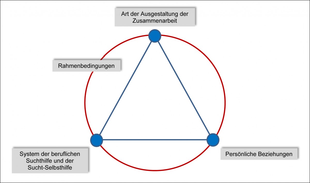 Abb. 1: Zentrale Faktoren, welche die Zusammenarbeit zwischen beruflicher Suchthilfe und Sucht-Selbsthilfe beeinflussen