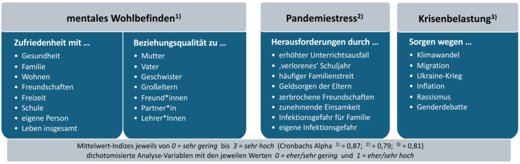 Übersicht 1: Operationalisierung von mentalem Wohlbefinden, Pandemiestress und Krisenbelastung der Jugendlichen