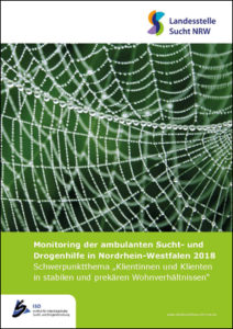 Pressestelle der Landesstelle Sucht NRW, 22.01.2020. Quelle: Monitoring der ambulanten Sucht- und Drogenhilfe in Nordrhein-Westfalen 2018. Schwerpunktthema „Klientinnen und Klienten in stabilen und prekären Wohnverhältnissen“, hrsg. v. Geschäftsstelle der Landesstelle Sucht NRW, S. 5-8.