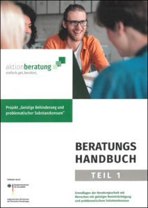 Quelle: Einleitung in: Beratungshandbuch. Grundlagen der Beratungsarbeit mit Menschen mit geistiger Beeinträchtigung und problematischem Substanzkonsum, hg. v. Bundesmodellprojekt aktionberatung und Autor Thomas Abel, Stand Juli 2020
