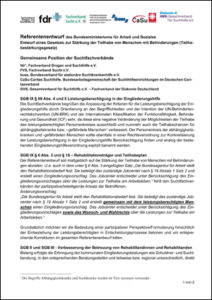 Referentenentwurf eines Gesetzes zur Stärkung der Teilhabe von Menschen mit Behinderungen (Teilhabestärkungsgesetz)