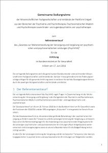 Die wissenschaftlichen Fachgesellschaften und Verbände üben nicht nur Kritik am Referentenentwurf eines Gesetzes zur Weiterentwicklung der Versorgung und Vergütung für psychiatrische und psychosomatische Leistungen (PsychVVG). In der gemeinsamen Stellungnahme begrüßen sie die Grundausrichtung des neuen Vergütungs- und Versorgungssystems und sehen einen Teil ihrer Forderungen erfüllt. „Doch in der Ausgestaltung bleibt das PsychVVG in seiner jetzigen Form insgesamt hinter unseren Erwartungen zurück. Wir haben eine Reihe von Problembereichen festgestellt, bei welchen das Bundesgesundheitsministerium zwingend nachbessern muss, damit das Gesetz zu keiner Verschlechterung der Versorgungslage führt“, stellt der zukünftige Präsident der Deutschen Gesellschaft für Psychiatrie und Psychotherapie, Psychosomatik und Nervenheilkunde e. V. (DGPPN), Prof. Arno Deister aus Itzehoe, fest.
