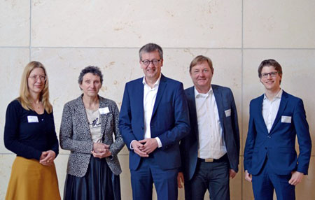 Katrin Bahr (Condrobs), Beatrix Zurek (Leitung Gesundheitsreferat der Landeshauptstadt München), Burkhard Blienert (Drogenbeauftragter), Frederik Kronthaler (Condrobs), Dr. Niklas Müller (Ministerium) (v.l.n.r.); Fotocredit: Condrobs