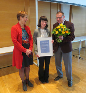 Preisträgerin Jun.-Prof. Dr. Sophie Baumann (Mitte) mit Dr. Wibke Voigt, Vorsitzende des buss, und Dr. Bernd Wessel, stellvertretender Vorsitzender